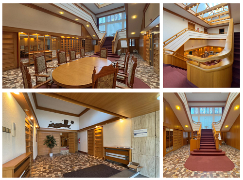 Hlavní budova je pak napojena na další administrativní prostory, klubový sál videokonferencí, prostory pro