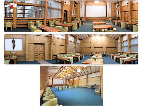 osob, s velkoplošným elektronicky ovládaným plátnem. Dále sál pro workshopy a