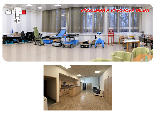 testování robotických technologií, s přilehlým prostorem pro elektroniky. V prvním podpodlaží je pak další