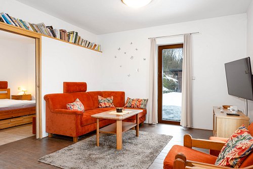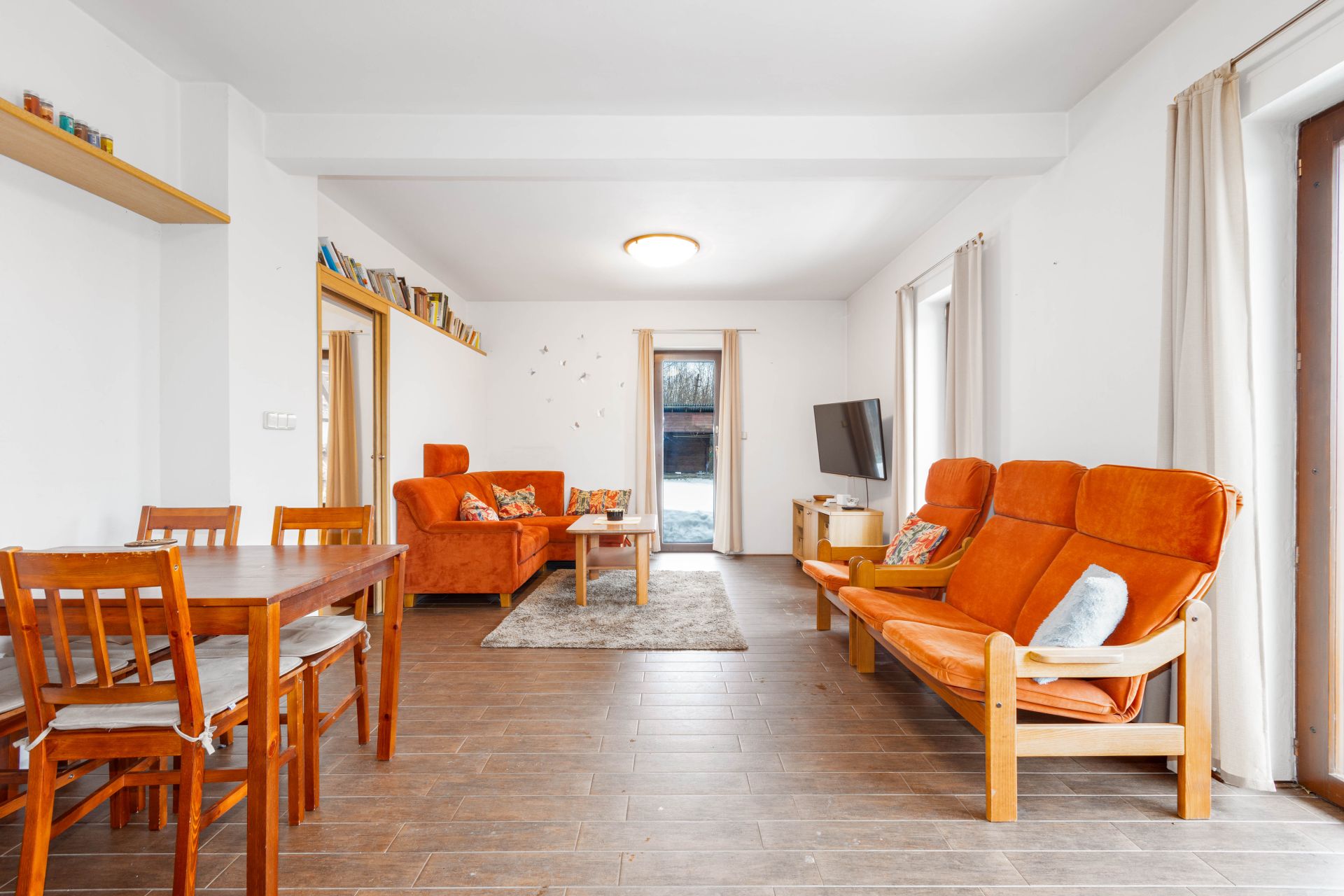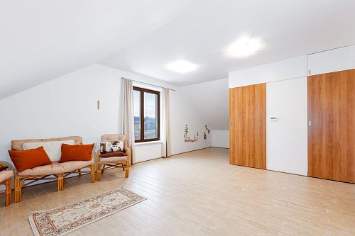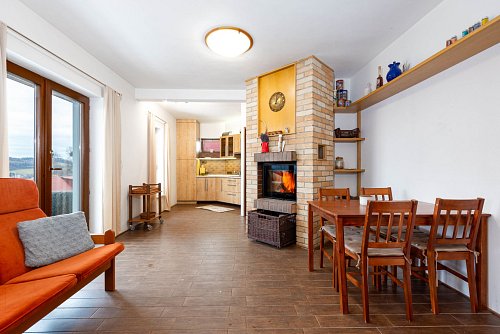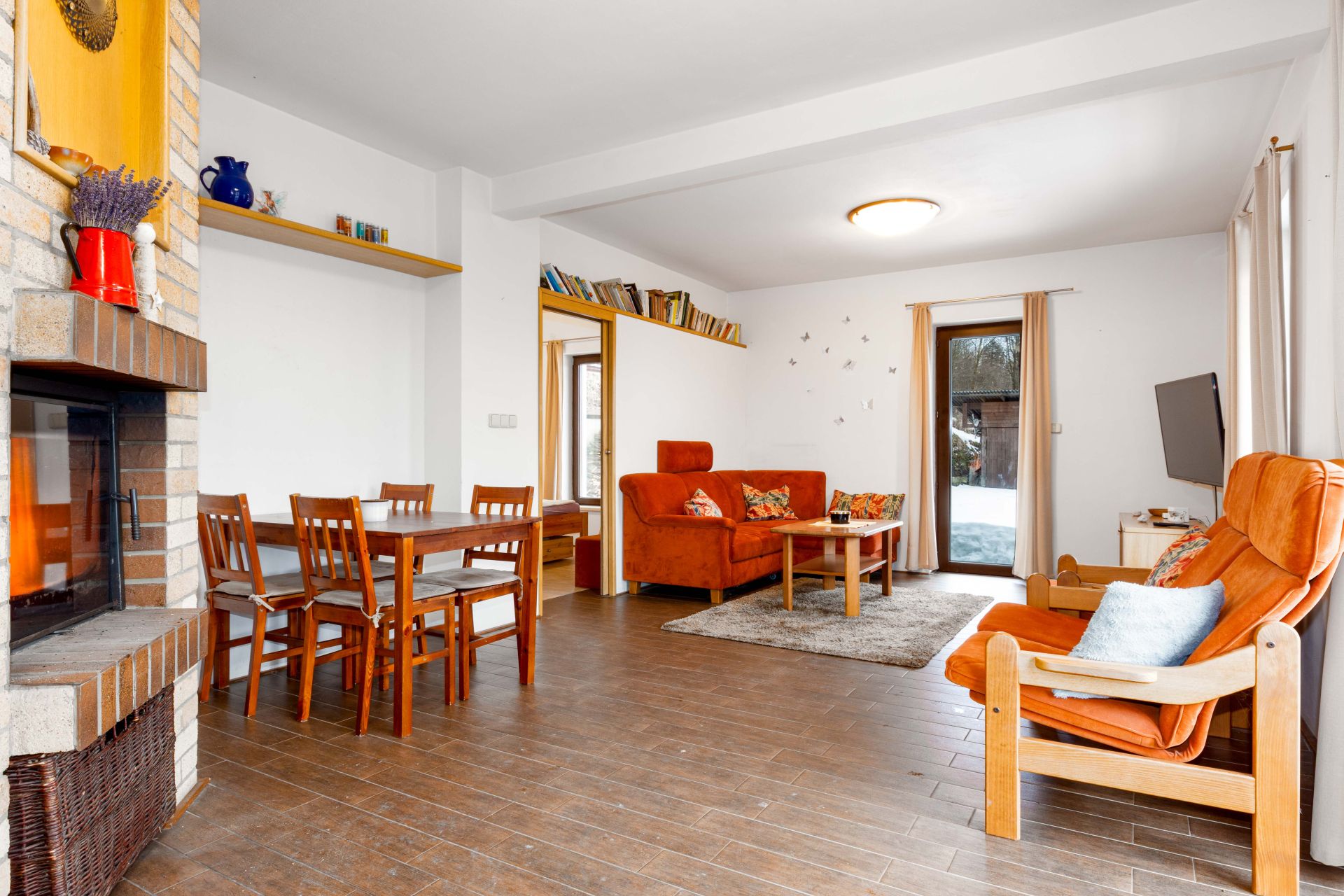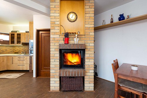 V pěší dostupnosti najdete nejen potraviny, ale také wellness centrum s restaurací U Fandy, kde si můžete dopřát zasloužený odpočinek a gastronomické zážitky. Tento dům je ideální volbou pro ty, kteří hledají moderní bydlení v krásné přírodě s veškerým komfortem a dostupností služeb. Je ale vhodný na víkendové a prázdninové pobyty po náročném pracovním týdnu pro obyvatele měst.
